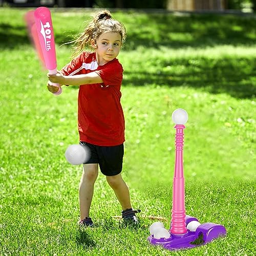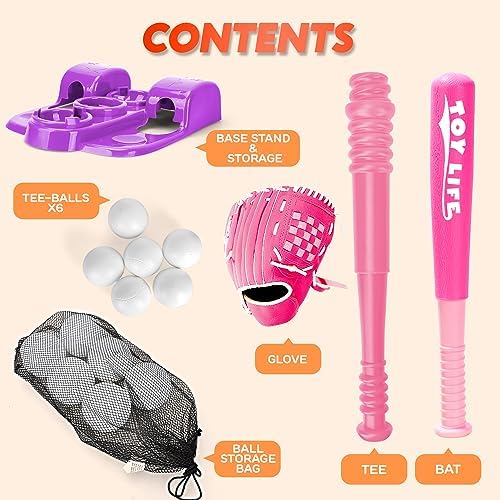 ⚾ Safe and Sturdy! Our Teeball tee set as kid outdoor toy is made of strong, durable materials that will stand up to tough swings. Plus a nice size ball to hit that won’t dent. The Tee stands sturdy and straight. This TOY Life Tee ball set is a good approach to play for age 3-12yrs old kids.