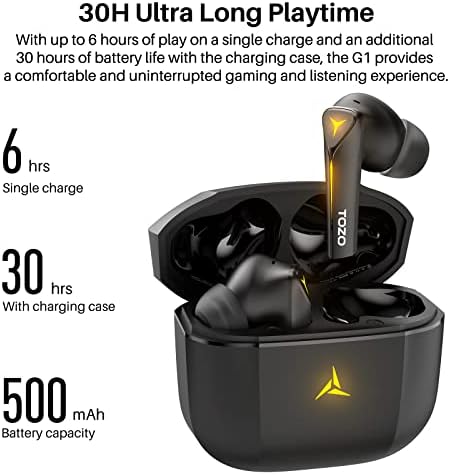 【30H Ultra Long Playtime】With up to 6 hours of play on a single charge and an additional 30 hours of battery life with the charging case, the G1 provides a comfortable and uninterrupted gaming and listening experience. Users can enjoy extended playtime without worrying about battery life.