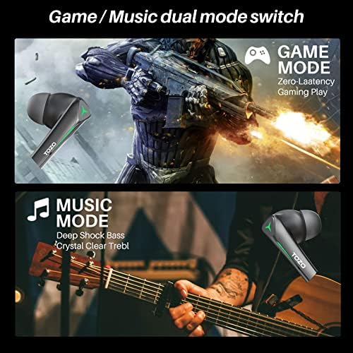 【Game & Music Dual Mode】The TOZO G1 earbuds feature a game/music sensitive switch that optimizes audio performance based on the selected mode. In game mode, the earbuds can accurately capture the sound of footsteps, gunfire, and other critical audio cues, helping players quickly identify enemy positions and gain a competitive edge. Additionally, the earbuds include a breathing light that enhances the immersive gaming experience and doubles the excitement of gameplay.