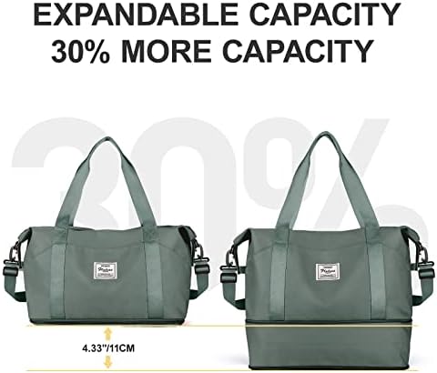 【High Capacity Travel Bag】Travel Bag has three multiple internal and four external organizational pockets,which ensure you placed more scientifically and orderly.The overnight bag for women has Large Capacity.Ordinary size :41*26*22CM,Expansion Dimension:41*37*22CM.You can carry it onto an airplane. Large storage space for a clothes for short trip.It has a capacity of 35L and can hold 6 to 8 pieces of summer clothes,Cosmetics,toiletries,wallets,keys,earphones,mobile power,mobile phones,files.