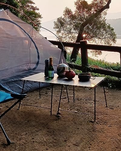 🌟【DURABLE AND ECO-FRIENDLY MATERIAL】Different from other portable desktops made of wood or nylon, the surface of the aluminum countertop is oxidized, and has the characteristics of waterproof, anti-corrosion, scratch resistance, long service life, and easy cleaning.The desktop is made of wire drawing technology, exquisite and beautiful. You can use it on the desktop to make coffee, make tea, barbecue,cooking and etc.