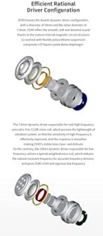 Relying on the high-precision DLP-3D printing technology, the acoustic nozzle structure with filtering function and the accurately calculated RC frequency division form a hybrid double frequency division, which makes the two dynamic driver perform respectively, offering the closer design goal of objective indicators.