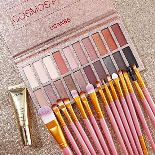 UCANBE 10 Colors Eyeshadow Palette Makeup +15Pcs Brushes Set + Eye Shadow Primer All in One Makeup Kit Waterproof Long Lasting High Pigment Eye Shadow