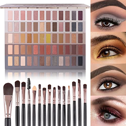 ☆ UCANBE Luxury Gathering 60-pan palette is an eyeshadow palette with rose-hued, earth-toned as well as brown-toned sparkling neutrals in ultra-smooth mattes, gorgeous pearls, and glimmering metallic for natural looks and stunning gorgeous party looks. And the 15Pcs professional brush kit is prepared for blush, highlighter, eye shadow, eyeliner, eyelash, eyebrow, lip makeup.