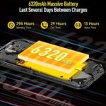 🍁【6300mAh Big Battery Rugged Android Phone + 6.52″ Large Screen + OTG】The largest battery ever embedded in a small rugged smartphone. The Armor X13 brings to the industry a rare combination of compact size and long battery life. A larger 6300mAh battery keeps the phone going much longer, delivering up to 4 days of normal use on a single charge. And its 5W OTG reverse charging can be a lifesaver sometimes, to fuel another phone, watch, or earbuds.