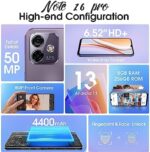 💍【Octa-core Processor】:Note 16 Pro features a powerful Unisoc T606 that won’t let you down. The octa-core architecture strikes a balance between performance and power consumption, which runs most applications smoothly while making the fun last longer. Built-in 4400mAh battery.