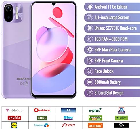 Ulefone Note 6 GSM 3G Unlocked Smartphone, Triple Card Slots, 6.1″ Waterdrop Full- Screen Dual SIM Unlocked Cell Phones, AI Camera 5MP+2MP, 3300mAh, Face Unlock, Android 11 – Purple