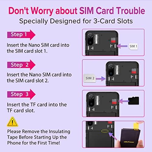 🔥 3 independent card slots for 1* Nano SIM, 1* Nano SIM, 1* TF card(up to 128GB). ❤️Note: Please remove the insulating tape before starting up the phone for the first time!