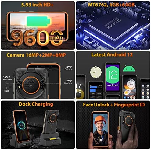 【9600mAh Battery & Dock Charging】The super large 9600mAh battery powers the handset with 528 hours standby time and 52 hours call time. Besides, OTG reverse charging is supported for smartphones, laptops, etc. With 5V/2A output, it is not only a dock charger, but also a phone holder(🧡The dock charger sold separately).
