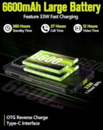 【6600mAh Battery & 33W Fast Charging】Armor 22 packs a 6600mAh large capacity battery, 360 hours standby time, 27 hours call time and 12 hours video playback. Its 33W fast charging saves the time and enables /your device always ready to use. The reverse charging supported feature helps you solve the urgent need to recover your watches, smartphone or earphones.