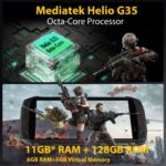 【11GB RAM+128GB ROM】Along with 11GB RAM(6GB RAM + 5GB virtual RAM) and 128GB ROM(Max. Expansion Supported 256GB), it provides spacious space for downloaded apps, video, images, music storage. Ulefone Armor 15 packs MediaTek Helio G35 processor, which combines octa-core CPU and 2.3GHz frequency.