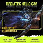 High-speed Performance – Utilizes the MediaTek Helio G36 octa-core chipset, Up to 2.2GHz, delivering optimal performance and power efficiency. It comes with 8GB of RAM(4GB RAM + 4GB virtual RAM) and 64GB of internal storage, while also supporting a 256GB microSD card for more possibilities.