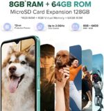 ⚫ 8GB RAM(4GB RAM + 4GB virtual RAM) + 64GB ROM storage as well as MediaTek Helio A22 processor and support external 128GB MicroSD card storage.