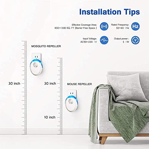 Easy To Use: Just plug the electronic pest control ultrasonic repellent in power sockets and it will start to repel the pests when you notice the blue night light is on