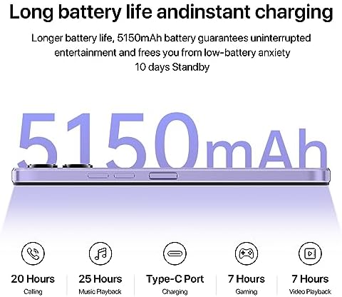 6.52IN LARGE SCREEN PHONE:The unlocked mobile phone adopts a 6.52in ultra HD screen ,6.52-inch screen is wider, 120Hz Touch Sampling Rate and the 20:9 aspect ratio and dual speaker design allow you to enjoy a cinema like viewing experience,Immerse yourself in all your favorite movies, TV shows, and video games. 720*1600 resolution, each picture presents a vivid natural color, bring incredible immersive