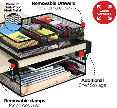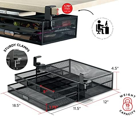 Home Office Products Desk Space & Workspace Organizer Under Desk Drawer Organizer Clamp-On, Mesh Metal Desk Drawer Attachment, 2 Drawer Slide Out, On Desk Or Under Desk Organizer For Office Supplies & Home Essentials