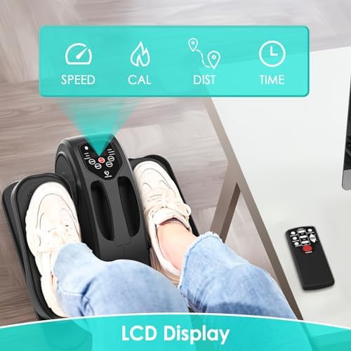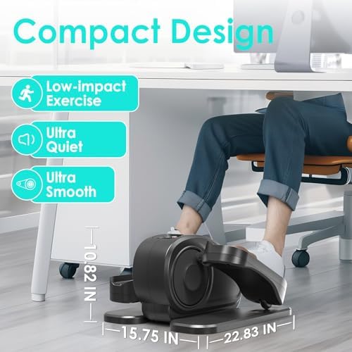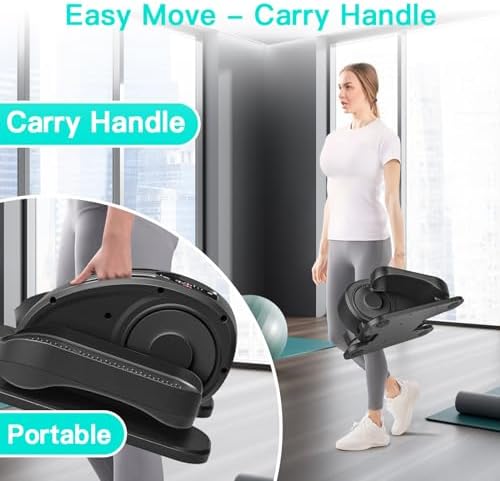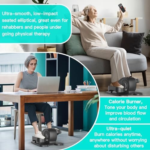 【𝗘𝗮𝘀𝘆 𝘁𝗼 𝗨𝘀𝗲】No assembly required. The compact and portable design makes this under desk elliptical easy to move around the house. It doesn’t make an unpleasant noise, you can use it quietly at home and office. It is equipped with a unique remote control, so you can use the remote control for more convenient exercise.
