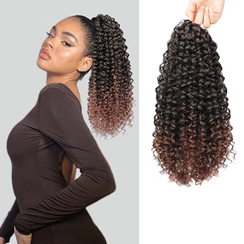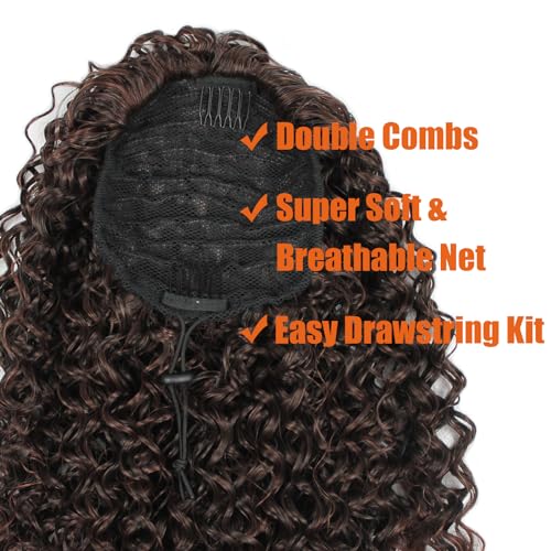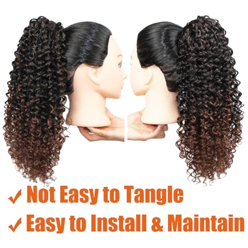 UNIFAB Curly Drawstring Ponytail For Black Women 14 Inch Ombre Brown Afro Kinky Curly Natural Look Synthetic Hair Clip On Ponytails Extension For Black Women (14Inch, 1b/30)