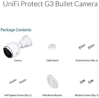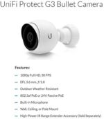 The UniFi G4 Series 4MP Bullet Camera from Ubiquiti Networks. This unit uses a CMOS sensor to capture 2688 x 1512 resolution at 24 fps. The camera features an IR LED for visibility in low-light conditions, a fixed lens that delivers an 86° horizontal field of view, and a built-in microphone to pick up audio. Integrated PoE technology simplifies connectivity by transferring data and power over one cable. The UniFi Protect app for iOS and Android enables remote management. This camera is housed in an IPX4- and IK04-rated enclosure for protection from water and impact.
