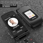 【Built for Seniors】USHINING 4G senior flip phone, easy to use operation system, 2.8 inner+1.77 inch external screen with big menu icon, large font, high volume and high-definition loudspeakers, equipped with a charging dock, very convenient for the elderly when charge the phone.