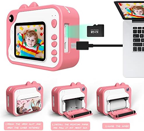 【Instant Print & Ink Free】 kids instant digital camera, with 3 rolls of printing paper , can print 240 pictures. 3 seconds to print, no more waiting. Ink free printing technology, safety use for children, print paper material is skin-friendly and easy to replace.