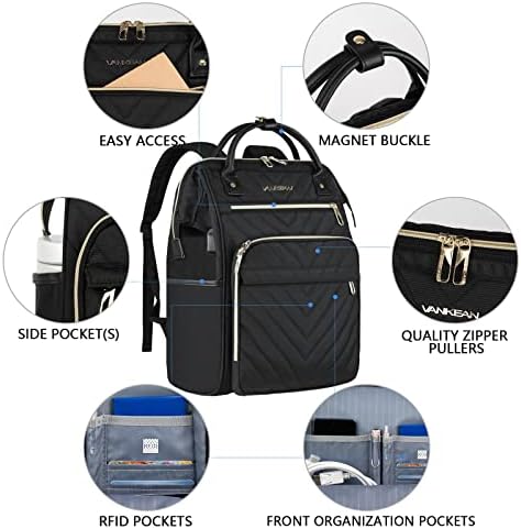 VANKEAN 17 Inch Laptop Backpack for Women Men Fashion Computer Work Bag, Large Capacity Waterproof Backpack with USB Port & RFID Pockets, College Daypack Business Travel, Black