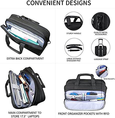 VANKEAN Laptop Briefcase for Men Women, Fits Up to 17.3 Inch Laptop Expandable Premium Laptop Shoulder Bag Water-Repellent Messenger Bag Computer Bag for Travel/Business-Black