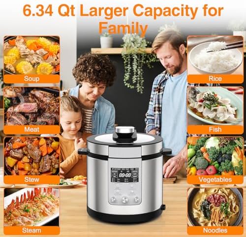 🥘【Easily Store In Kitchens】 Whether you live in an apartment, house, dorm room or RV. The electric pressure cooker (13.38” x 12.2 x 12.99”) will fit seamlessly into your kitchen and pantry. Weighing 12.34 lbs. and highly transportable, you can enjoy this power cooker in a variety of locations.