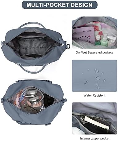 【Dry Wet Separated Tote Gym Bag】High-density waterproof wet pocket in the main compartment, which can help you to separate dry items and wet items, if you have wet clothes or a towel, you can put it in this crossbody bag.