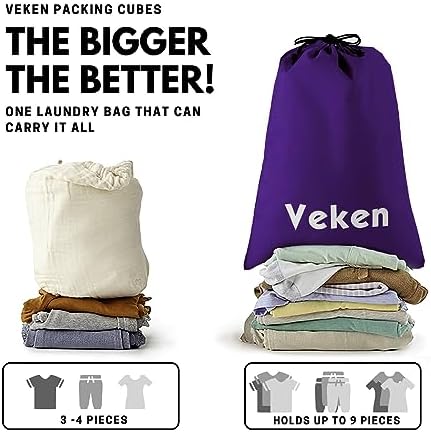 [Travel storage simplified] – Store 3 times more laundry when you travel with the extra-large laundry bag that comes with our packing cubes for travel. You don’t need to dig through the entire suitcase just to pull out a pair of socks that ends up messing up everything that you spent hours organizing! Simply switch to the Veken travel organizer bags for suitcases that are sure to help you de-clutter your suitcase and keep it tidy, allowing you to ORGANIZE LIKE A PRO!