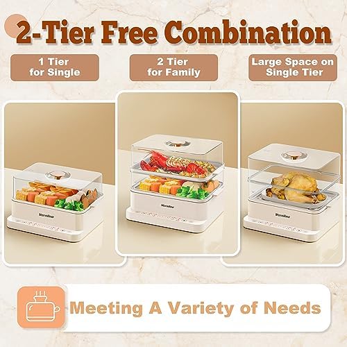 【6L Capacity, 2-Tier Free Combination】Veroline food steamer has a 6L capacity, which is perfect for steaming food or meal prep for a whole family. With 2-tier BPA-Free steam trays, you can quickly cook food on multiple levels all at once, saving you time and effort in the kitchen.