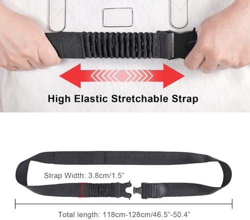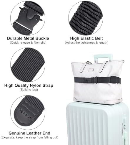 ✅Fits Most Bags Over Handle. The elastic secret loop can fit luggage handle and keep belt in place tightly. The 45’’-50’’ adjustable luggage belt fits most totes, backpacks, purses, briefcases, diaper bags, messenger bags & more.