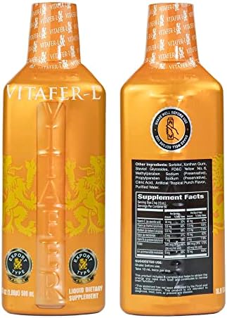 How to Use: The liquid dietary supplement comes in a delicious tropical-flavor and contains 500ml. It is the only Vitafer-L Gold supplement on the market with homeopathic and medicinal components. Take 1 to 2 tablespoons (10ml / 0.33 oz) using the measuring cap provided (do not fill completely). Do not exceed the recommended dose