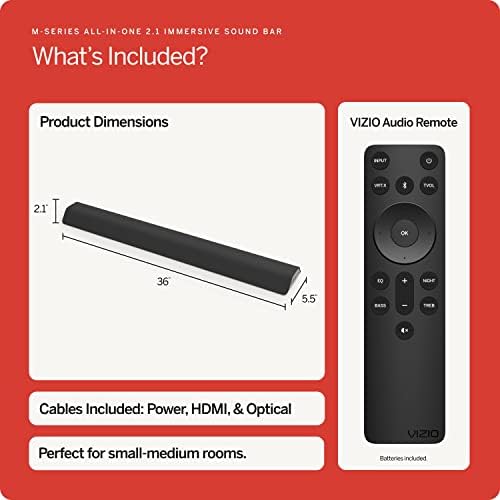 Minimalist design. Maximum impact. – Thanks to built-in dual subwoofers and a fully integrated design, the M-Series All-In-One sound bar needs no external components to sound its best. And at just 36 inches in width, it’ll fit just about anywhere.
