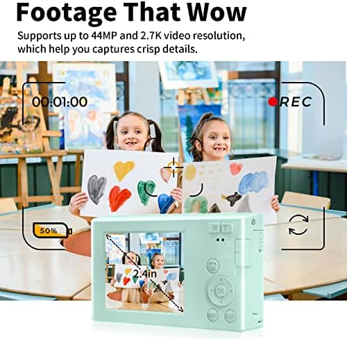 【16X DIGITAL ZOOM & MULTIFUCTIONAL HD DIGITAL CAMERA 】: VJIANGER kids digital camera supports 16x digital zoom, You can zoom in or zoom out the subject by pressing the W/T button while recording video and taking still images. This mini camera was also equipped with anti-shake, continuous shooting, self-timer.