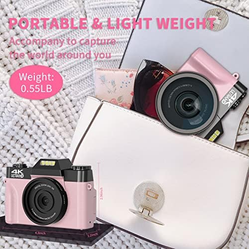 📸Perfect Gift📸: This 4K small digital camera with 5*3*2(IN) size is so lightweight and portable. The camcorder is designed for amateurs, not for professional cameras. Simple and convenient operation makes it an ideal camera gift for beginners, kids, teens, students, elderly to take pictures and shoot, a perfect gift to your family, friends and leaders for festivals, sports events, weddings, parties and important events, a perfect graduation gift for her to record your precious youth.