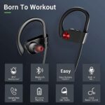 IPX7 Waterproof: With IPX7 waterproof rating, nano-coating technology efficiently prevents rainwater and sweat from penetrating and damaging wireless headphones’ sensitive components, keeps going in all weathers and through all workouts.