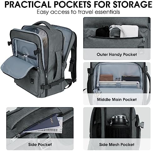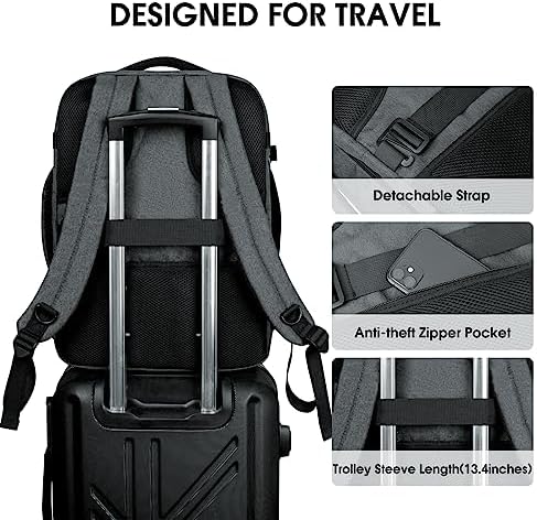 【EASY TO CARRY】The travel backpack is designed with sturdy padded straps and an air-mesh ventilated back panel to ensure comfortable wear for extended periods without fatigue or discomfort. It also includes two padded grab handles and a detachable strap on the back that can secure the shoulder straps horizontally, making it convenient for hand-carrying. Furthermore, it can function as a luggage sleeve, allowing easy placement on top of a suitcase for effortless mobility.