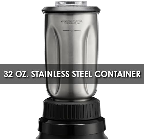 Waring Commercial Countertop Bar Blender, BevBasix™ Light Duty 1/2 HP with 32 oz Stainless Steel Container, Made in the USA, Professional Foodservice Use for Frozen Cocktail Drink, Dips, Smoothies