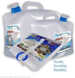 They come in 3 sizes (1.3/2.6/5.3 gallon) and enable you to quickly & conveniently be ready to store, transport & dispense all the water you need, without taking up much space before you need it.