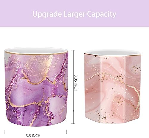 Makeup Brush Holder Organizer: Pencil holder measures 3.94″ H, 3.35″ W, It holds lots of pens and pencils makeup brush, keeps everything pretty organized and that will dress up your desk and office in a simple and elegant way.