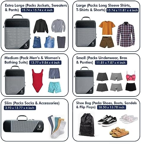 VERSATILE 2-IN-1 DESIGN: Our travel bags organizer for luggage can be used as compress packing cubes or expandable packing cubes, giving you flexibility at one price. Why settle for one when you can have both? Our packing compression cubes for travel are a smart option that suits your needs.