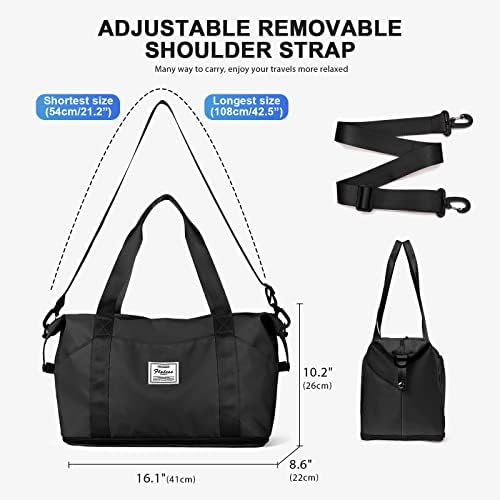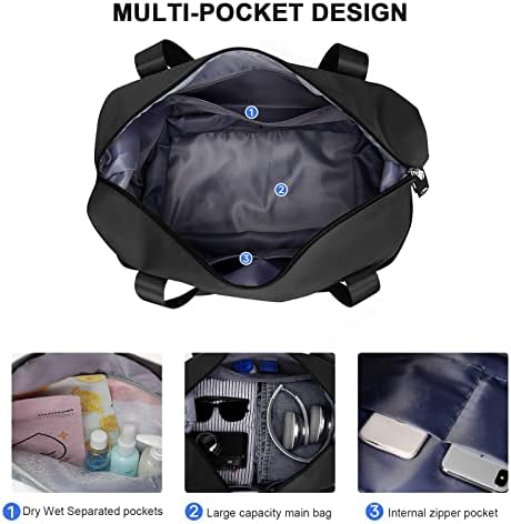【POCKET DESIGN】This weekender bag is designed with a large main pocket, a wet and dry pocket and two inner zipper pocket for small items.The main pocket is large enough to hold electronics, 2-3 sets of summer clothes and other supplies needed for traveling. The wet and dry pockets are designed to easily separate wet laundry, towels, etc. from clean laundry.Featuring with classy and gorgeous appearance, our travel duffel bags reach modern urban ladies greatest demand and fantasy on travel bag.