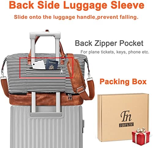 Home Luggage & Travel Accessories Weekender Bags for Women Canvas Overnight Bags with Shoe Compartment Travel Duffel Bag Carry On Bag with Trolley Sleeve & Shoulder Strap for Men Travel/Business/Gift