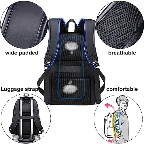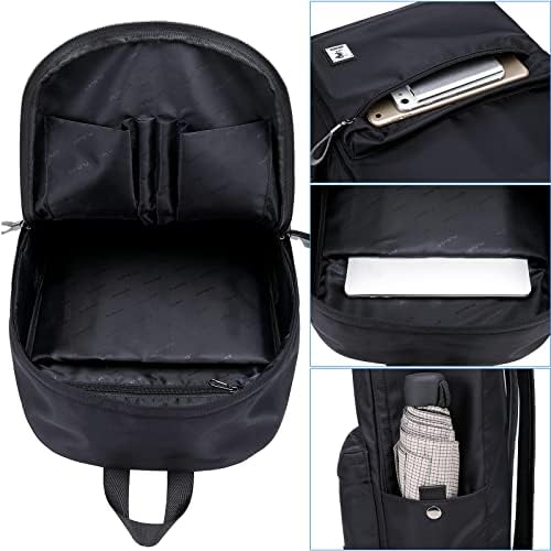 weiatas Black Laptop Backpack for Men Women with USB Charging Port, College Bookbag with Laptop Compartmen, Work Travel Computer Rucksack with Luggage Strap
