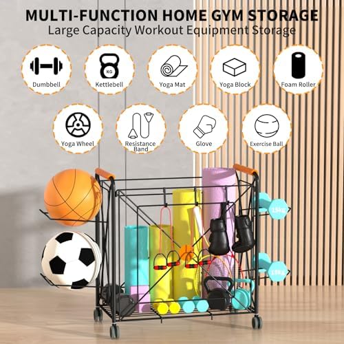 【Muti-Purpose Storage Rack】: This exercise equipment storage is ideal for storing your fitness equipment at home gym, yoga studios, garage. The workout storage organizer is used to store your yoga mat, dumbbells, kettlebells, yoga brick, resistance band, roller wheel, foam roller etc. Perfectly organize all your gym equipment in one storage rack.