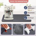 【Easy Clean】Coffee maker mat no need to clean frequently because hide stains well. Only wash it every two weeks or long time. coffee maker mat for countertops will not fade or wrinkle. Coffee machine mat can be washed by hand, dry naturally.