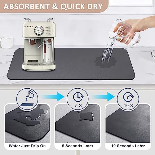 【Super Absorption】This coffee bar mat have super absorbent soft diatomite that can suck up spilled coffee instantly. Coffee drying mats for countertop strong water absorption, durable, light weight.coffee pot mat for countertops make you no need to wipe the sink countertops every time after using the coffee mat.