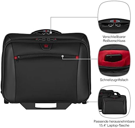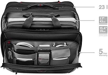 liMatching removable laptop caseliQuik PocketliChrome accented 3″ wheelsliFan-file compartmentliInterior stretch mesh pocketliChrome accented recessed carrying handleliTrolley strap keeps bag in place on a rolling suitcaseliOvernight compartment fits clothes for the next dayliOrganizer compartment for pens, business cards, phone and moreliLimited lifetime warrantyli16 1/2″ W x 16 1/2″ H x 9 1/2″ D; weight 10 lbsliIncludes removable day case