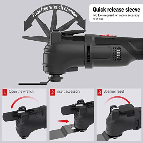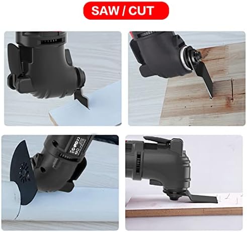 A maxi tool kit capable of all kinds of home jobs,cutting,sanding,scraping.With slim body,soft grip and ergonomic design, the machine can be easily operated.Thanks for 3°osillating angle ,makes machine work powerful and can easily get job done.This is a tool kit which can greatly help you deal with various challenge of home improvements,one kit at hand, one good help of well sleep.